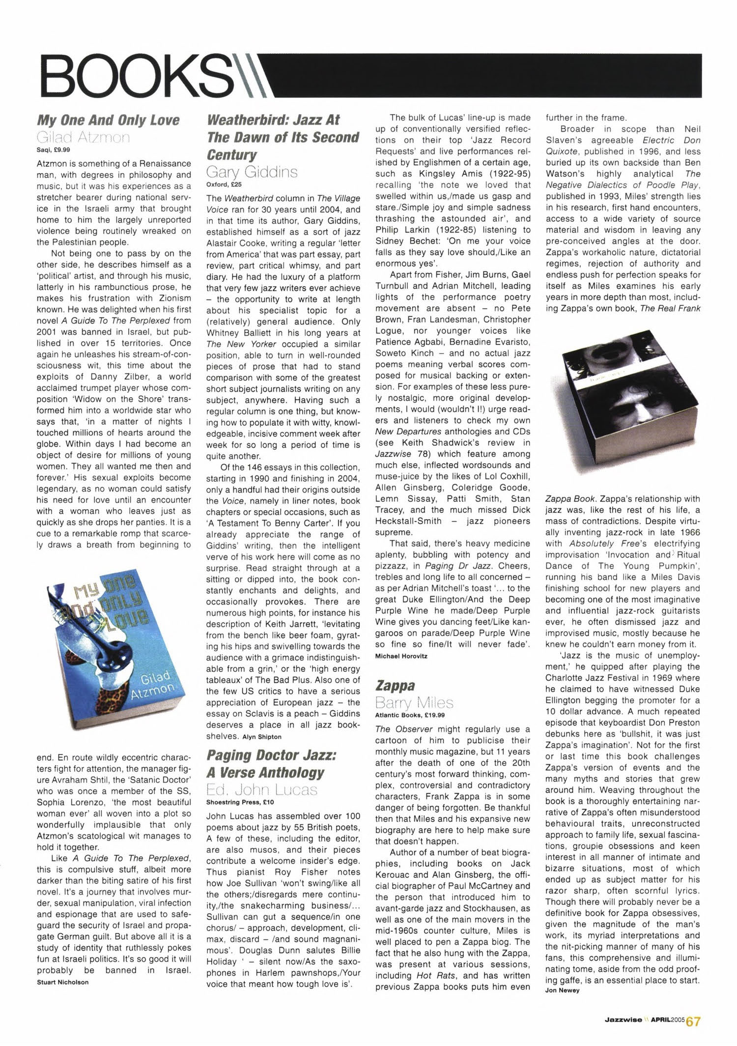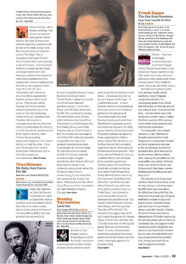 Ten years ago on 4 December 1993 guitarist/visionary Frank Zappa finally left the building leaving behind a huge legacy of pioneering music and outspoken opinions that has proved obliquely influential in shaping the style and attitudes of generations of rock and jazz musicians, while often upsetting their elders and certain establishment figures. In this eight page special Stuart Nicholson re-evaluates Zappa's jazz-oriented work and looks at the ways in which he made his mark on improvised music, Duncan Heining talks to Zappa's son Dweezil and many of the musicians who played with or were influenced by Zappa, while Laurie Staff dusts down his serious Zappa collection to guide you to the key jazz-related discs of his huge body of recorded work.