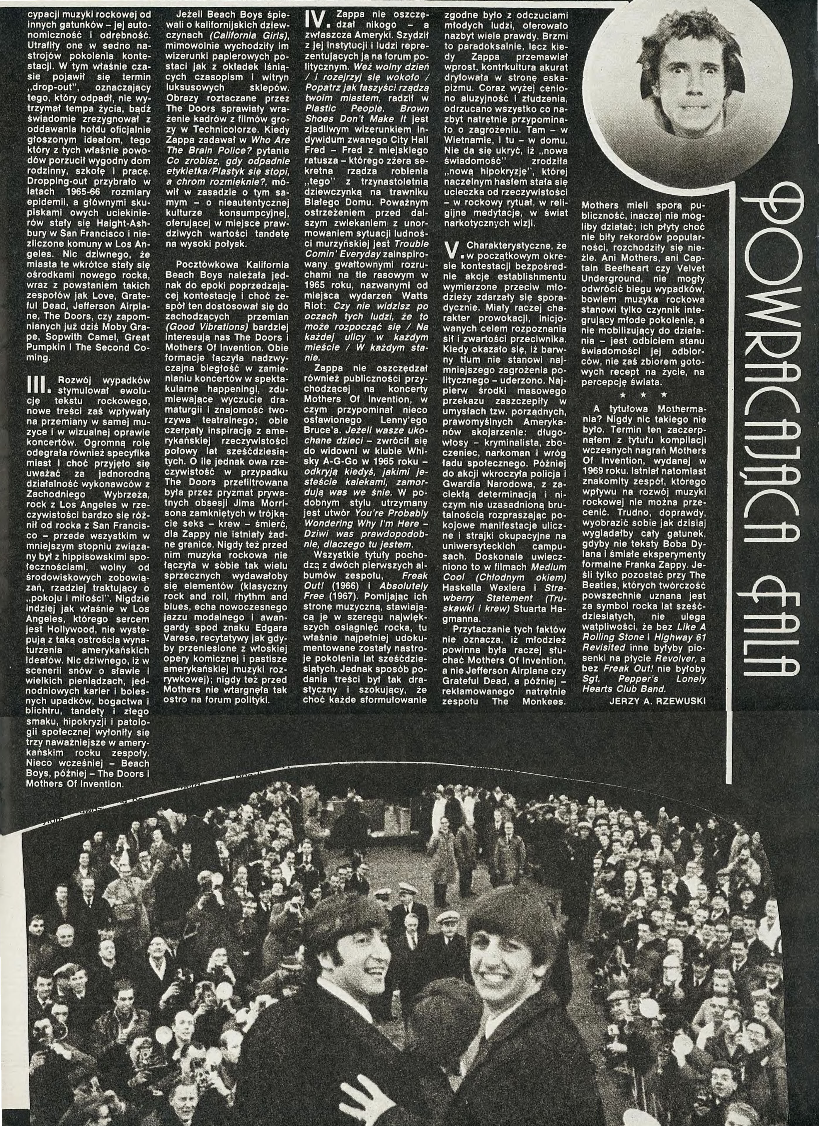 Automatic translation: It's truly difficult to imagine what the entire genre would look like today were it not for Bob Dylan's lyrics and Frank Zappa's bold formal experiments. Sticking with The Beatles, whose work is widely considered a symbol of 1960s rock, there's no doubt that without "Like a Rolling Stone" and "Highway 61 Revisited", the songs on Revolver would have been different, and without Freak Out! there would have been no Sgt. Pepper's Lonely Hearts Club Band. (read more)