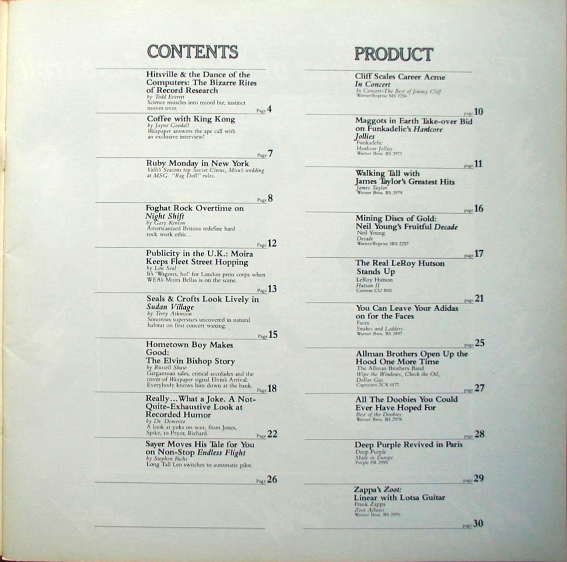 described by editor Gene Sculatti as a "chatty p.r. magazine"