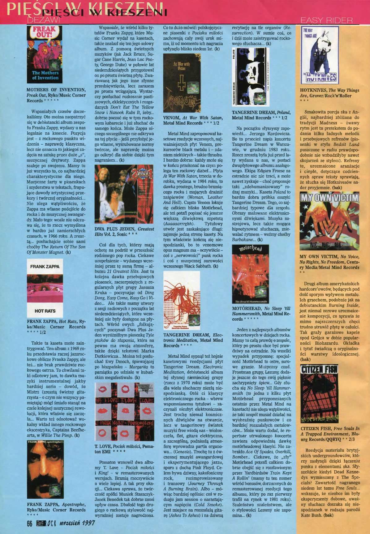 FRANK ZAPPA. The most intelligent rocker in the world. I took Joe's Garage off the shelf, but it could have been the Apostrophe album. Zappa had the ability to wit in his arrangements and assemble musical blocks, often very different, into interesting wholes. And I'm sure he didn't do it just to show off. He was a very talented composer... I even held the score of his work in my hands once. In the 1980s, Zappa planned to record an album in Poland with the Katowice-based WOSPR. I was supposed to play the Moog parts.