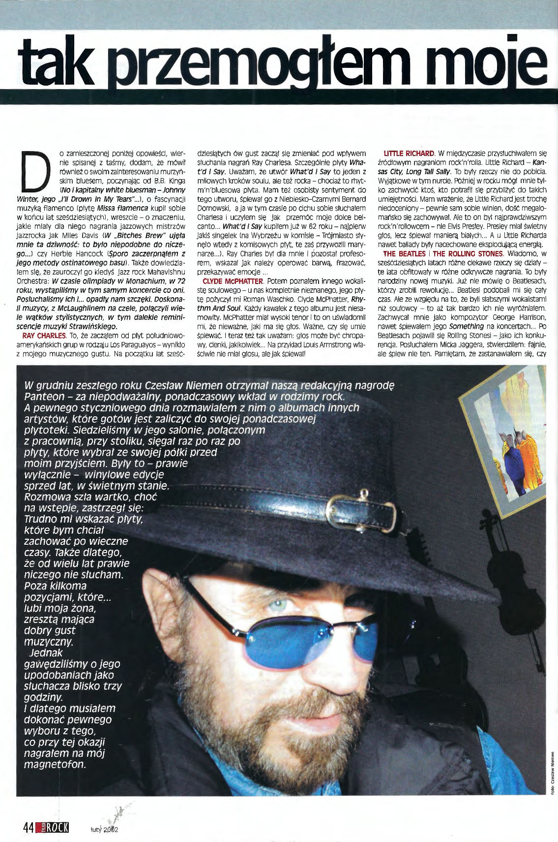 FRANK ZAPPA. The most intelligent rocker in the world. I took Joe's Garage off the shelf, but it could have been the Apostrophe album. Zappa had the ability to wit in his arrangements and assemble musical blocks, often very different, into interesting wholes. And I'm sure he didn't do it just to show off. He was a very talented composer... I even held the score of his work in my hands once. In the 1980s, Zappa planned to record an album in Poland with the Katowice-based WOSPR. I was supposed to play the Moog parts.