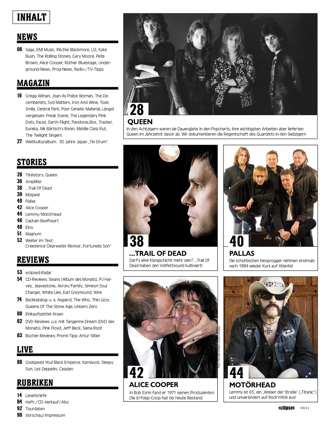 The cover story is "Die Geschichte der Rockfotografie" (The history of rock photography) complemented with interviews with some famous photographers, including with Baron Wolman (pp 52-55).