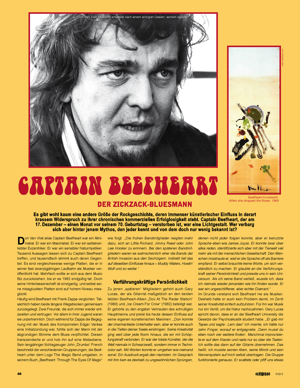 There is probably no other giant in rock history whose immense artistic influence stands in such stark contrast to his chronic commercial failure. Captain Beefheart, who died on December 17th – a month before his 70th birthday – was a shining light. But who was hiding behind that myth that everyone knows, yet about which so little is known?