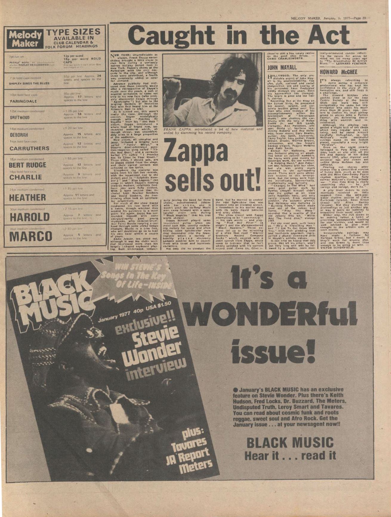 On page 6, a short news item is "Zappa zaps 'lood' poster".
