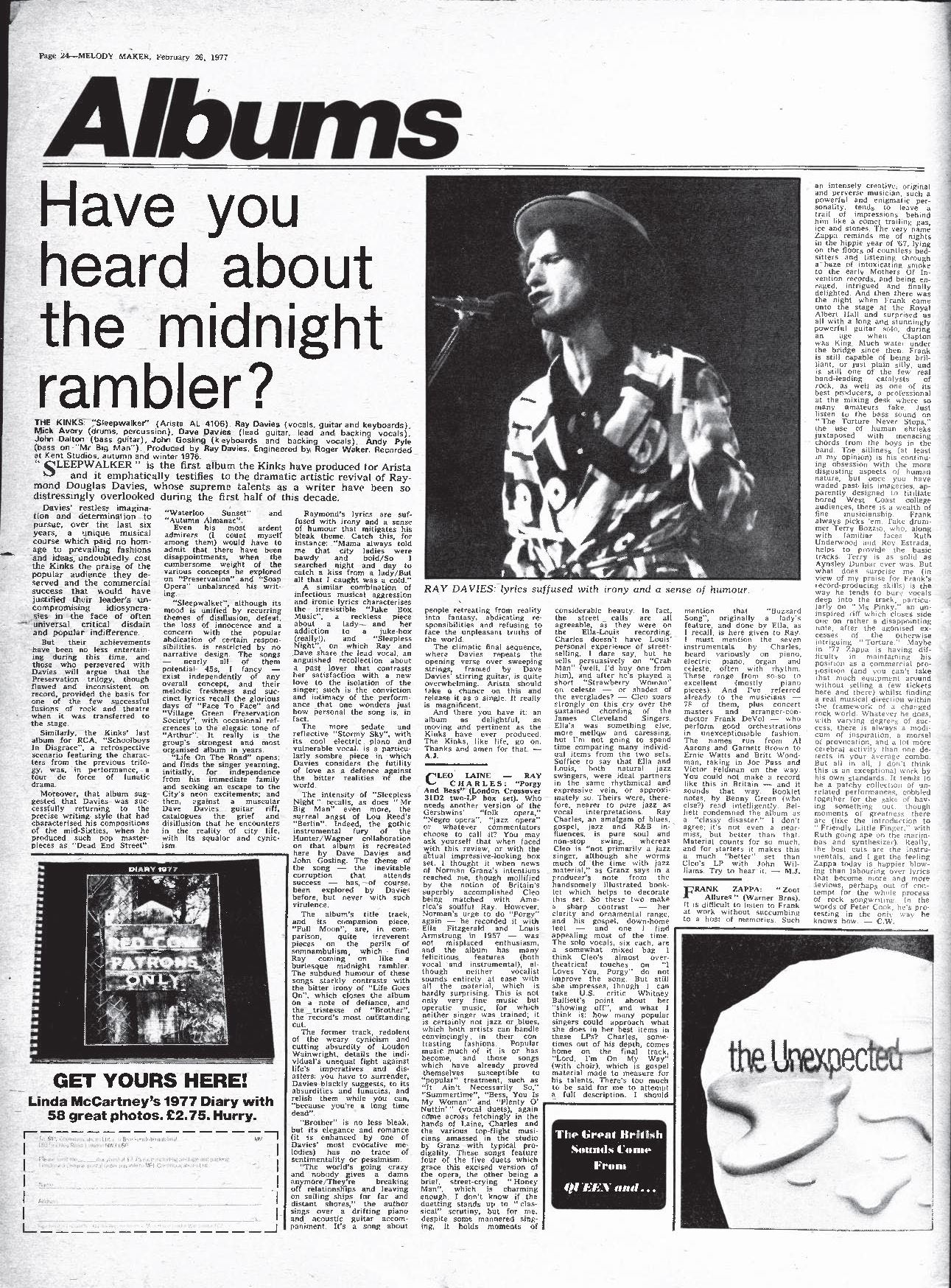 The Mothers are on a North American tour, constantly being hassled for interviews now "Apostrophe" is making it big here, and Zappa is due to finish a TV special as soon as he gets back to LA.