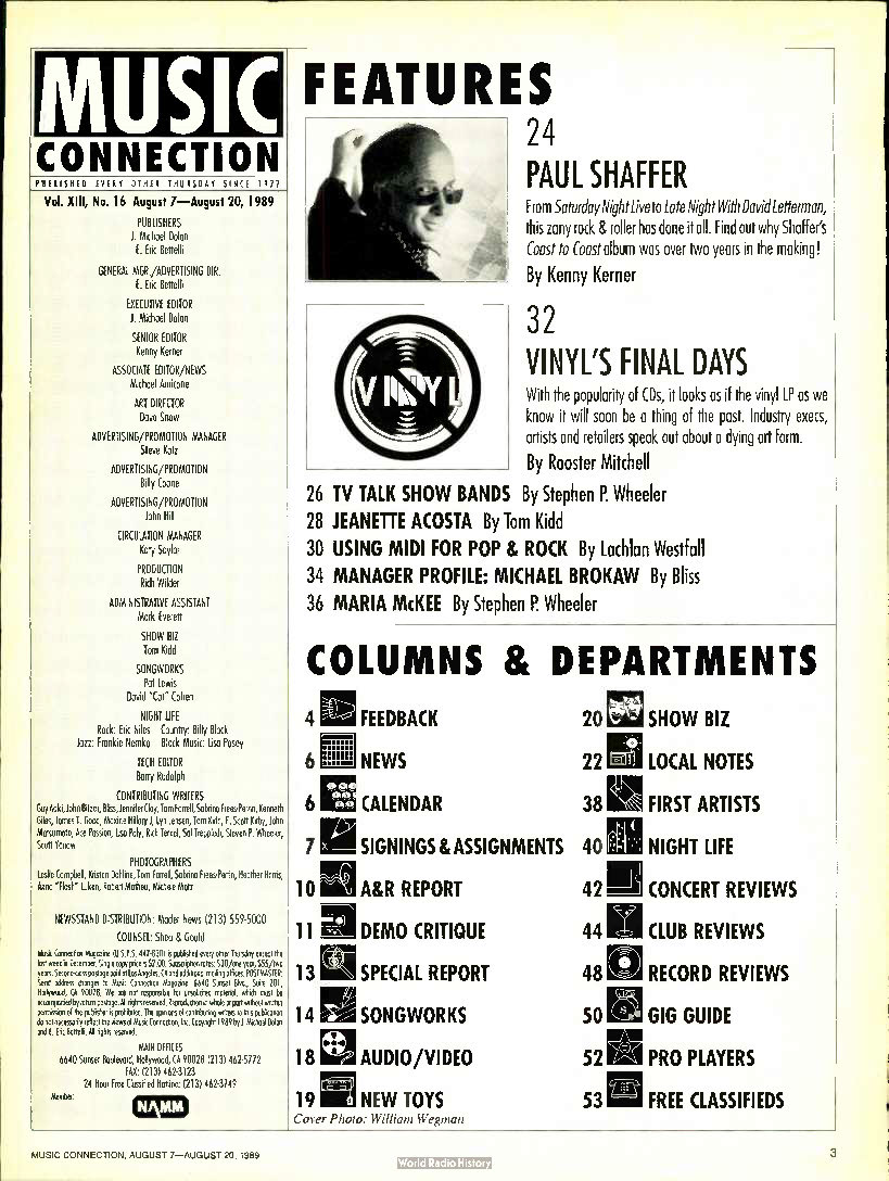 Article on Lisa Popeil on page 8. The Hot Rats Book by Bill Gubbins reviewed on page 14.