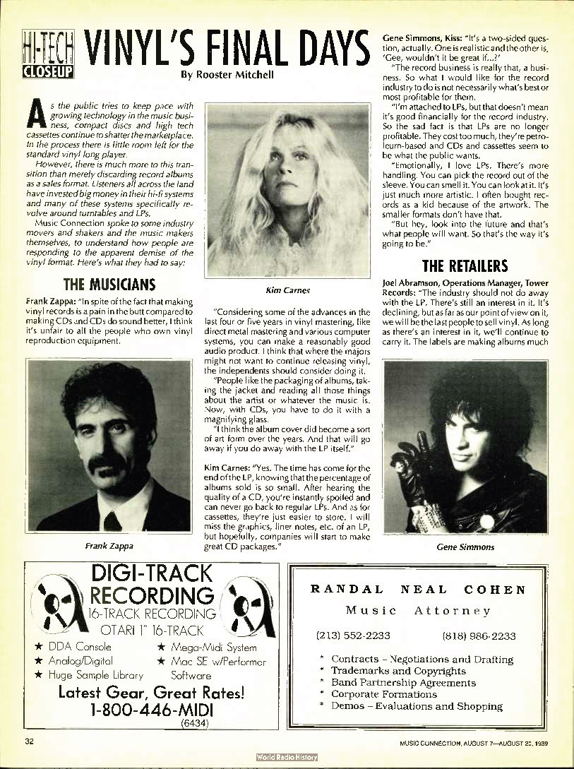 Nestled in the hills of Laurel Canyon, a state of the art digital studio is camouflaged behind the garage of a dignified, if relatively unspectacular residence. There, in the privacy of his own home, Frank Zappa spends most of his waking hours creating anything his fertile mind desires.