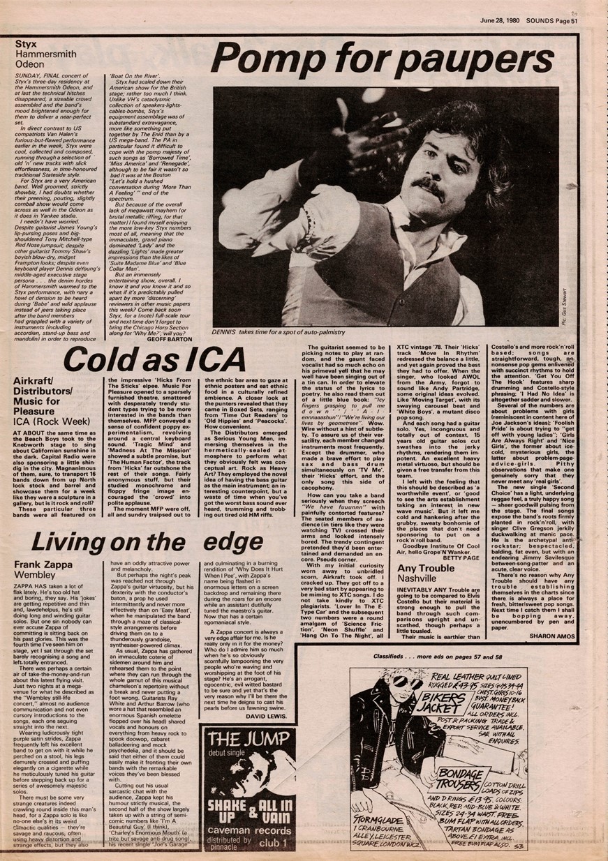 Frank Zappa is alive and well and touring in the USA with his new band, Zappa, and there's a record off called 'Zoot Allures' (only comprehensible to frogs at Brooklyn) which, like the other 14 Zappa records, has its moments of waggish controversy and finely conceptualized identity. Beware though, you may learn something from a Zappa record, ignorants need not apply. (read more)